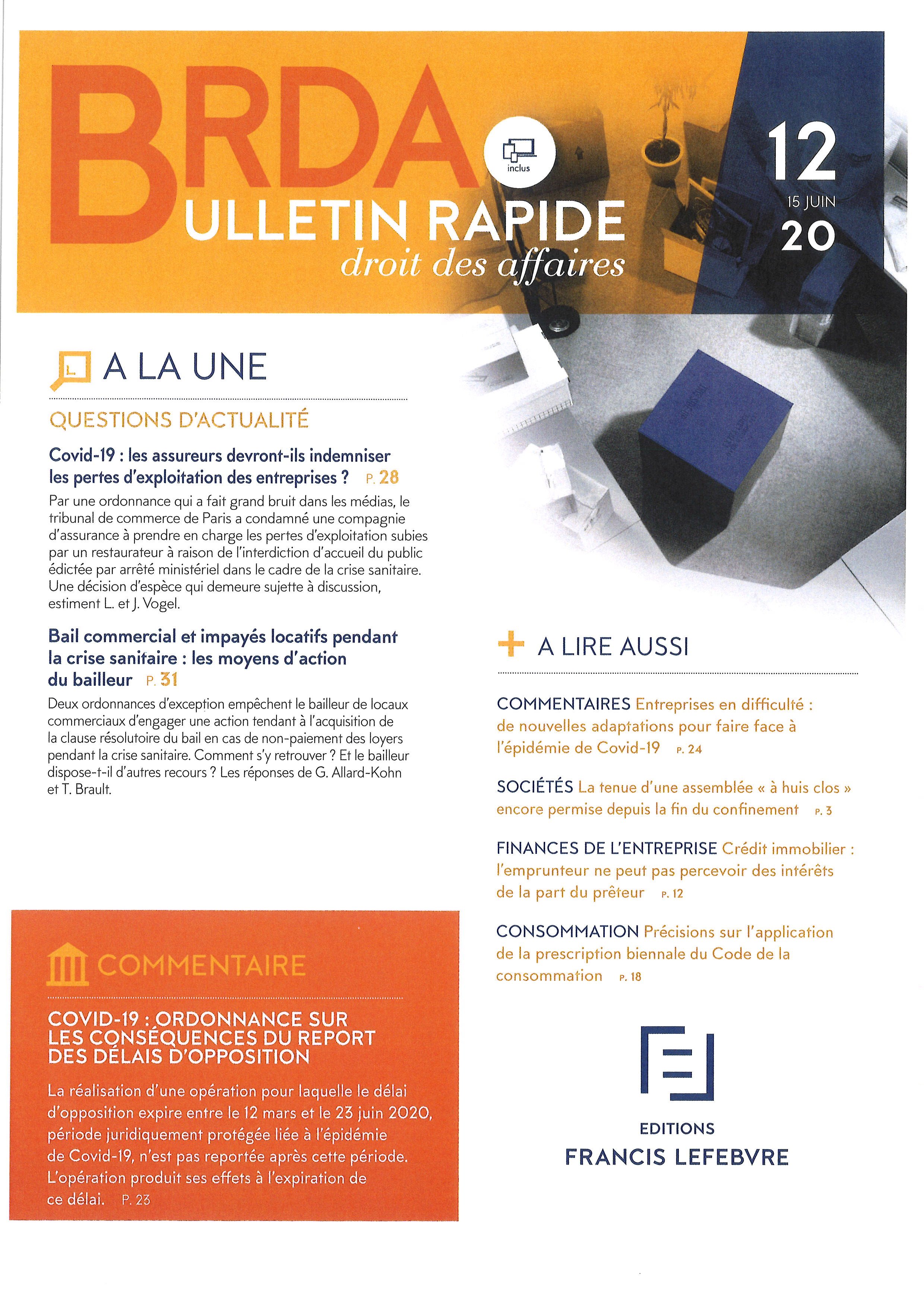 Revue Lamy droit des affaires n° 161- Juillet 2020