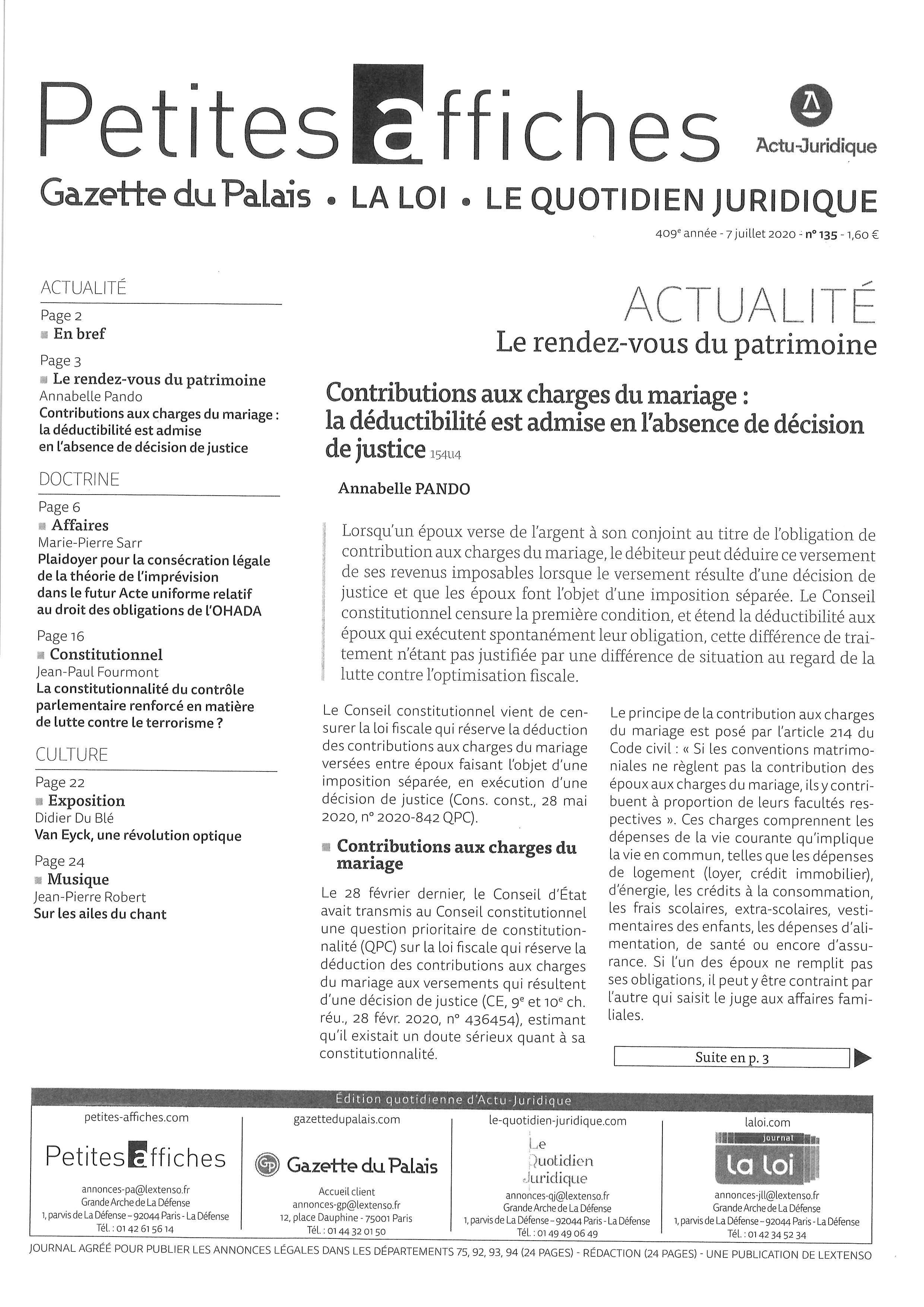 Dalloz IP/IT n° 7-8 Juillet-Août 2020